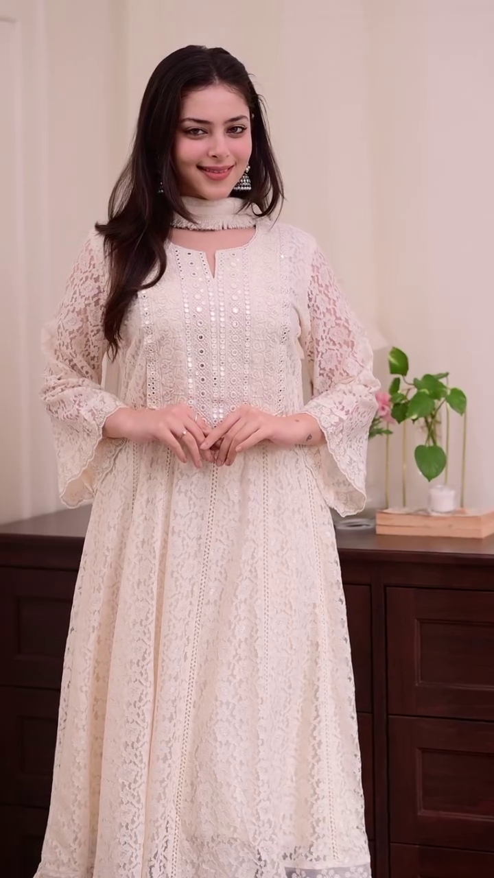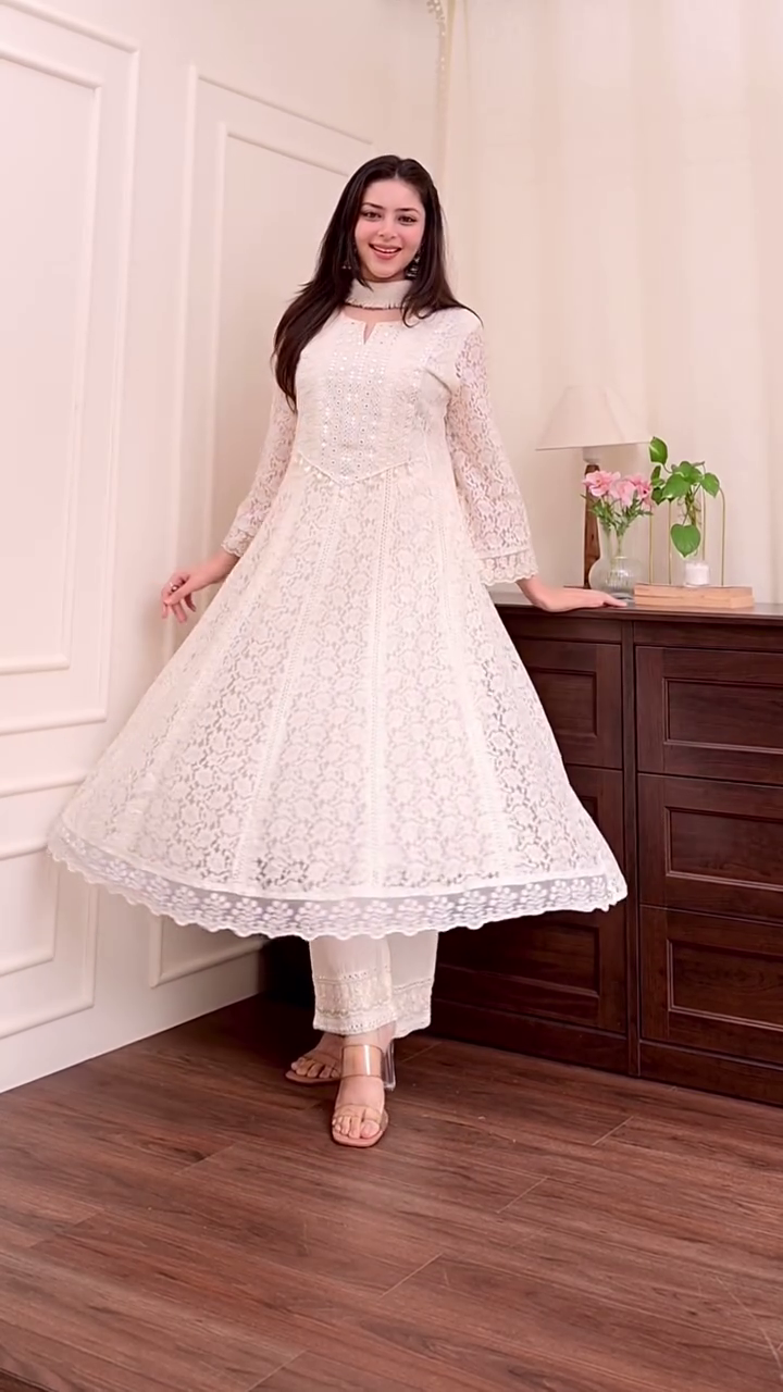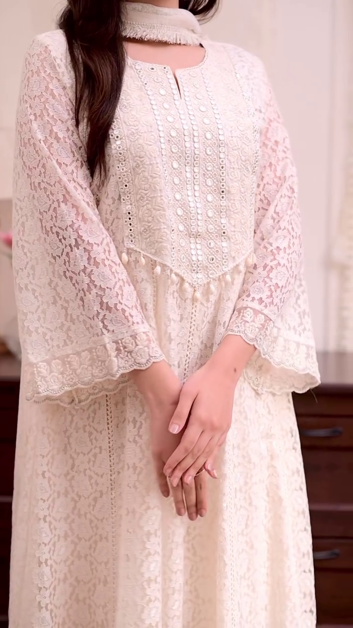 ✨ Pure Elegance: Get this stunning white lace kurta